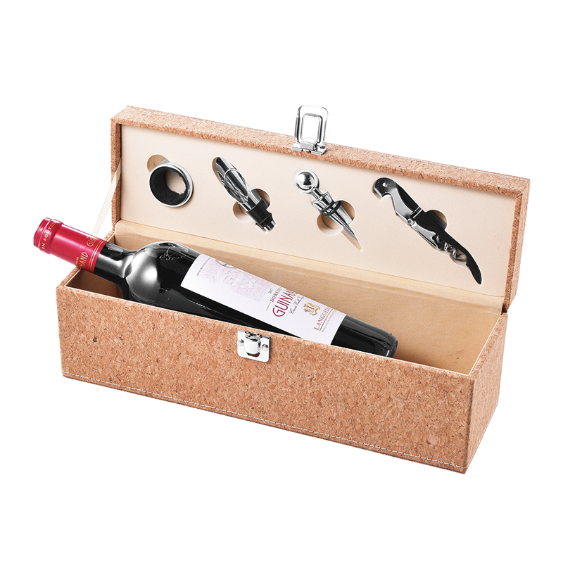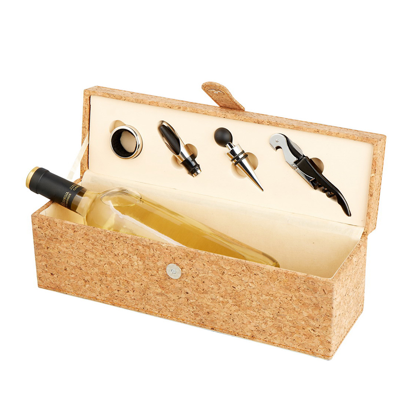 Cork case for 1 bottle with 4pcs wine accessories