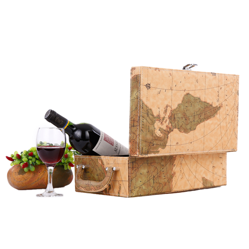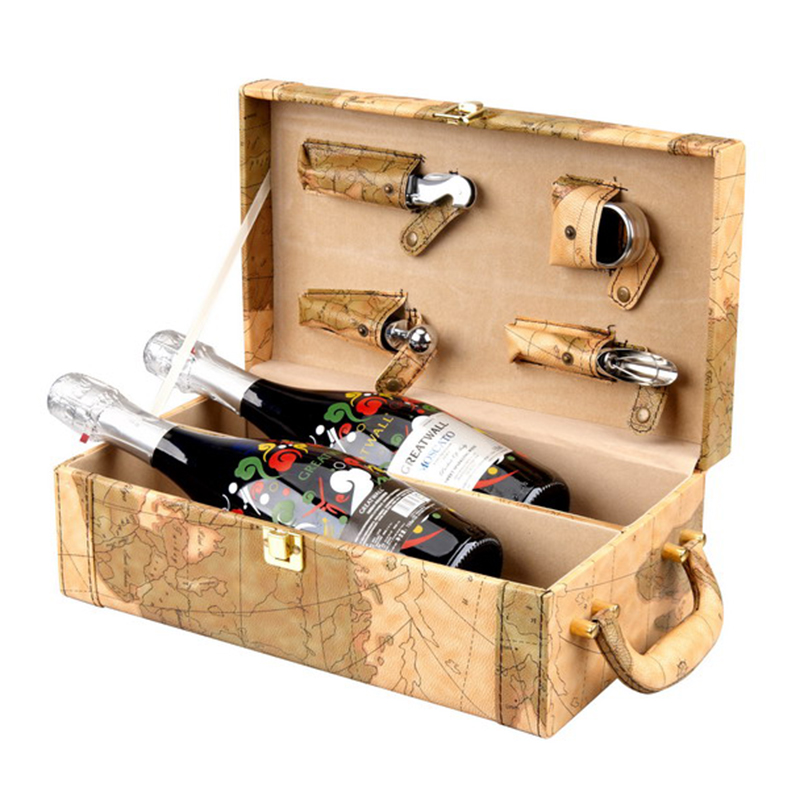 PU case for 2 bottle with 4pcs wine accessories