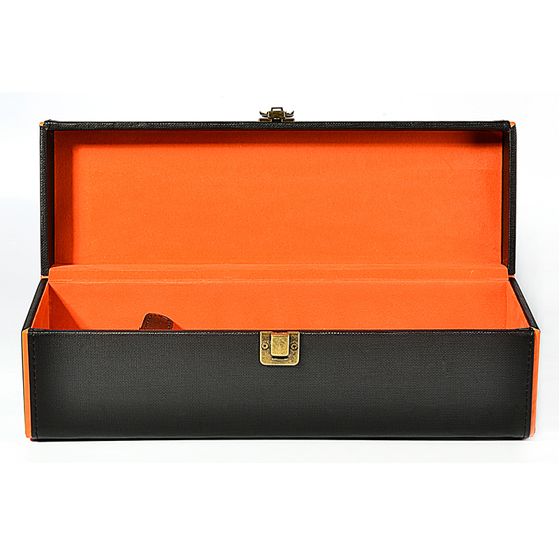 Black and orange leatherette with diamond one bottle wine box